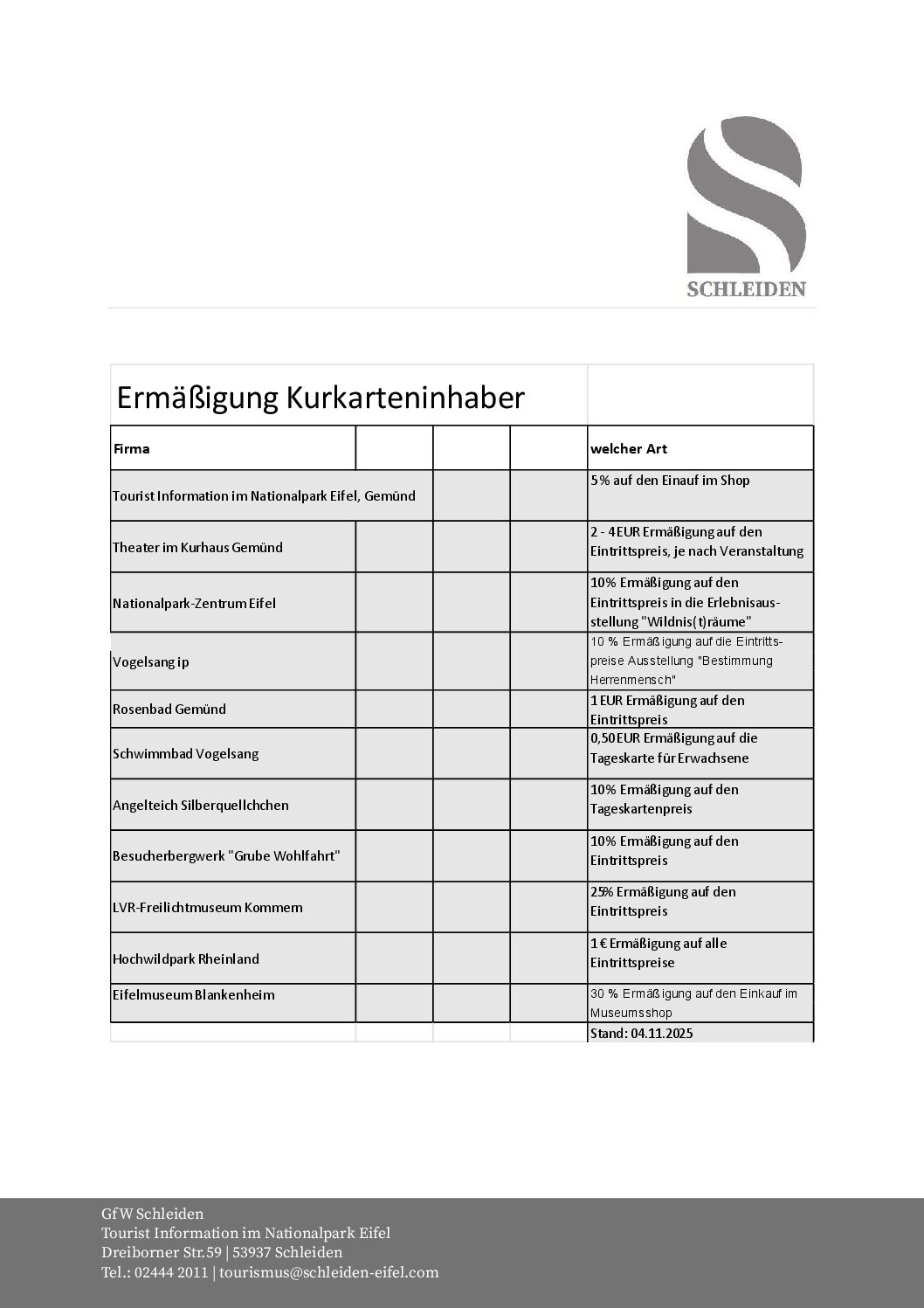 Ermäßigungen Kurkarte